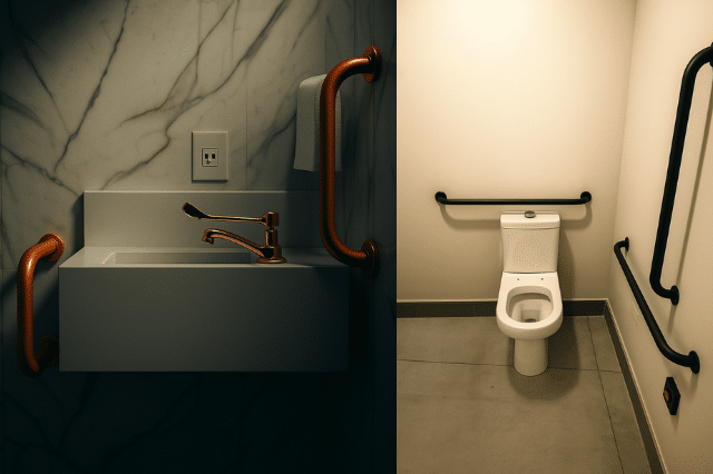 - Torneiras: Devem ser acionadas por alavancas, sensores ou dispositivos de baixo esforço (até 23 N).